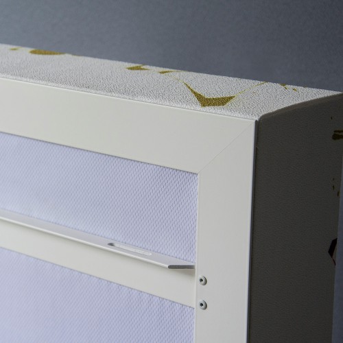 Our acoustic panels are made out of low density acoustic fabric, which allows sound to pass through to the absorbing material. The fabric is available in multiple colors, ordering of custom color tones is also possible.